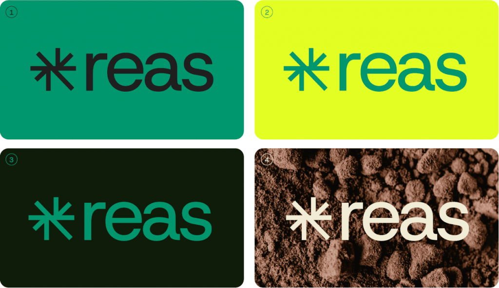 El logotipo mantiene el nombre reas en minúsculas —una decisión que habla de proximidad, de no querer imponerse— y lo acompaña con el tagline completo: redes de economía alternativa y solidaria. Las formas redondeadas de la tipografía no son una casualidad: son una metáfora de la circularidad que es inherente a la economía solidaria, a los ciclos naturales de los recursos, a cómo lo que aportamos vuelve a nosotros multiplicado.